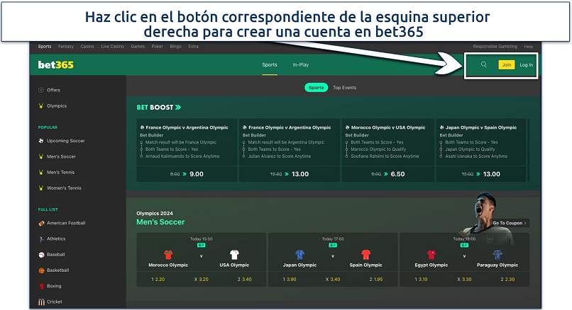 Una vez que te hayas conectado a un servidor VPN adecuado, accede al sitio web o la aplicación de la casa de apuestas deportivas bet365. Haz clic para registrarte o iniciar sesión en tu cuenta de bet365.