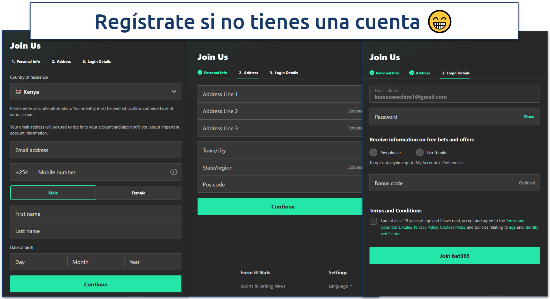 - Uso del sitio web oficial de bet365 en cada ubicación mientras viajas
