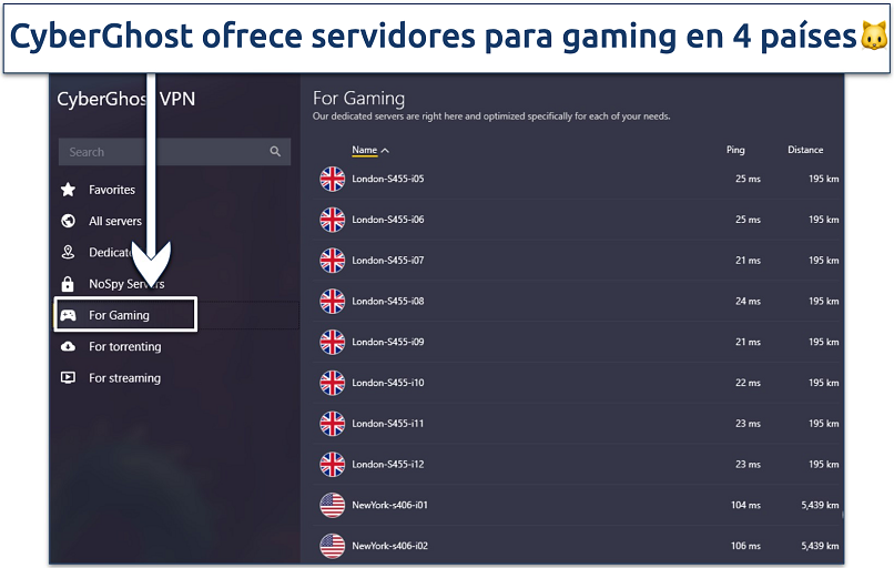 2. CyberGhost: servidores optimizados para gaming para encontrar fácilmente la conexión ideal a Warzone